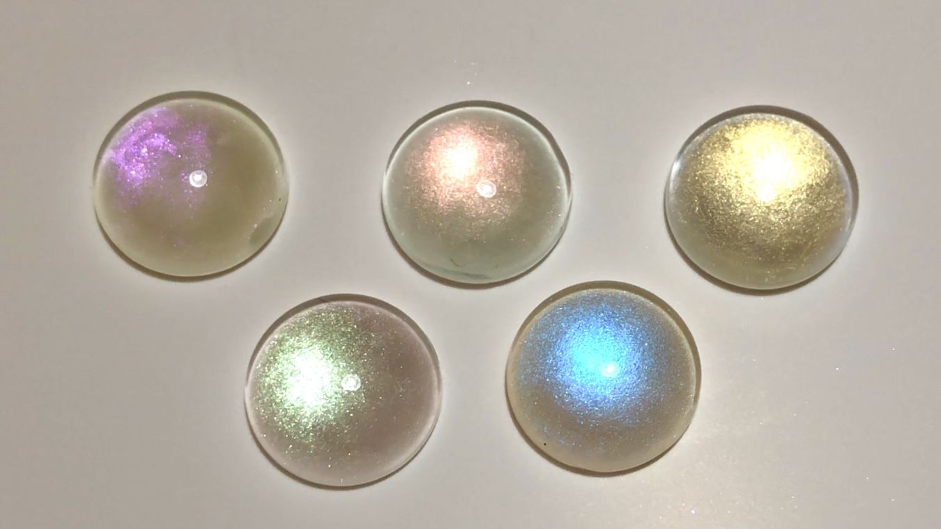 - Mix into translucent acrylic medium to create iridescent/interference nailpolishes.